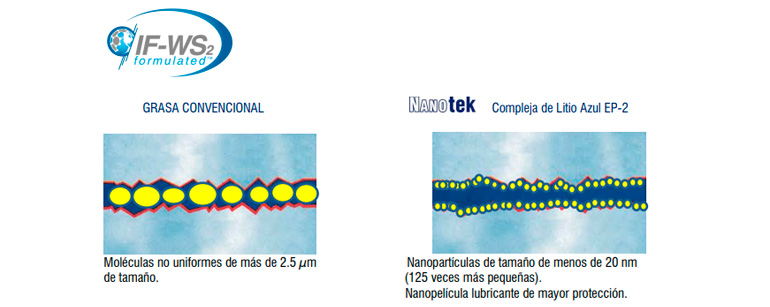 ácidos grasos e hidróxido de litio, disueltos en bases lubricantes altamente refinadas, incorporando nanopartículas de